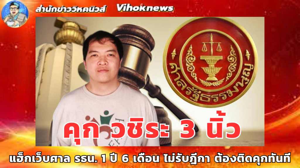 “วชิระ” จำเลยคดีแฮ็กเว็บศาล รธน. เข้าเรือนจำทันทีด้วยโทษจำคุก 1 ปี 6 เดือน เหตุศาลไม่รับฎีกาปัญหาข้อเท็จจริง เป็นผลให้คดีสิ้นสุดลง