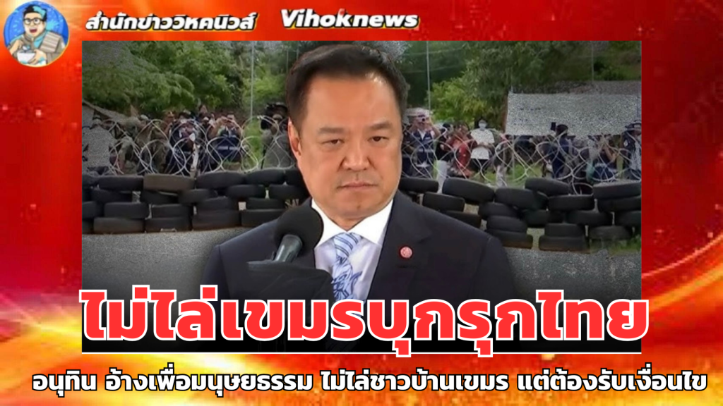 ‘นายกฯ อนุทิน’ เผย การผลักดันชาวกัมพูชาออกจาก ‘บ้านหนองจาน-หนองหญ้าแก้ว’ ต้องคำนึงถึงหลักมนุษยธรรม เหตุเป็นชาวบ้าน-ไม่ใช่ทหาร ดูห้วงเวลาเหมาะสม ไม่ใช่ 10 ต.ค.นี้ เผย ที่ประชุม สมช. เห็นชอบหลักการสร้างรั้วแนวชายแดนไทย-กัมพูชา รายละเอียดให้กองทัพไทยกำหนดตามสภาพภูมิประเทศ ลั่น ถ้า ‘กัมพูชา’ อยากอยู่แบบนี้ ไทยพร้อม แต่ถ้าอยากให้ชาวกัมพูชามีความเป็นอยู่ดีขึ้น ต้องรับเงื่อนไขของไทย