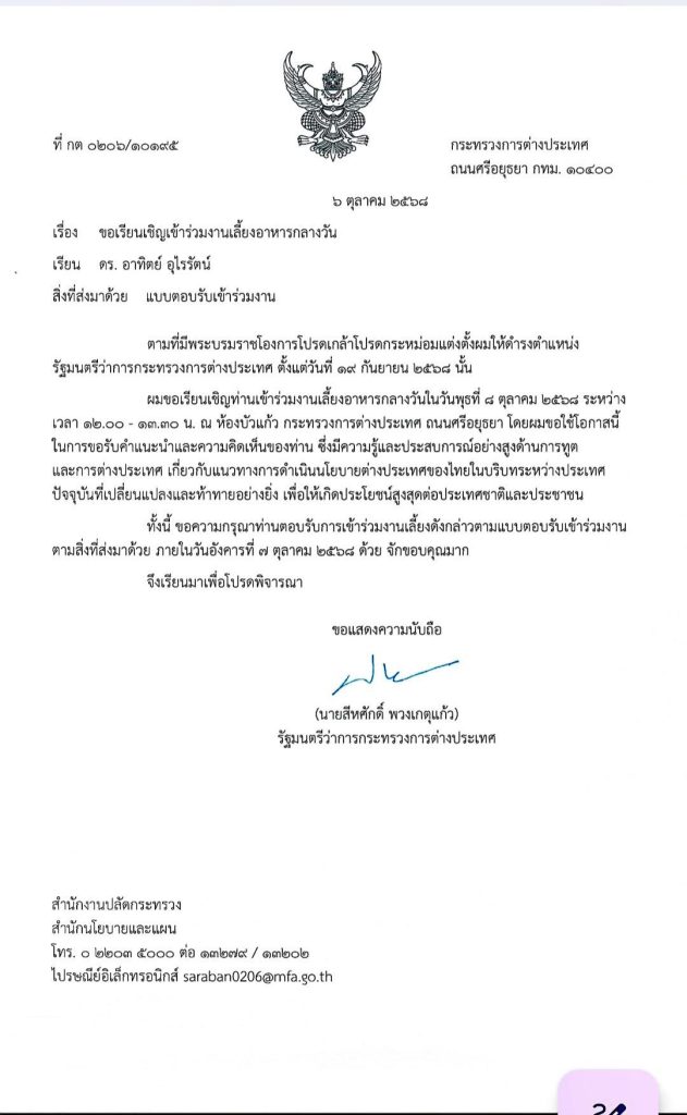 ขอขอบคุณท่านรัฐมนตรีว่าการกระทรวงการต่างประเทศที่เชิญผมไปร่วมรับประทานอาหารและปรึกษาหารือเกี่ยวกับการต่างประเทศของเรา