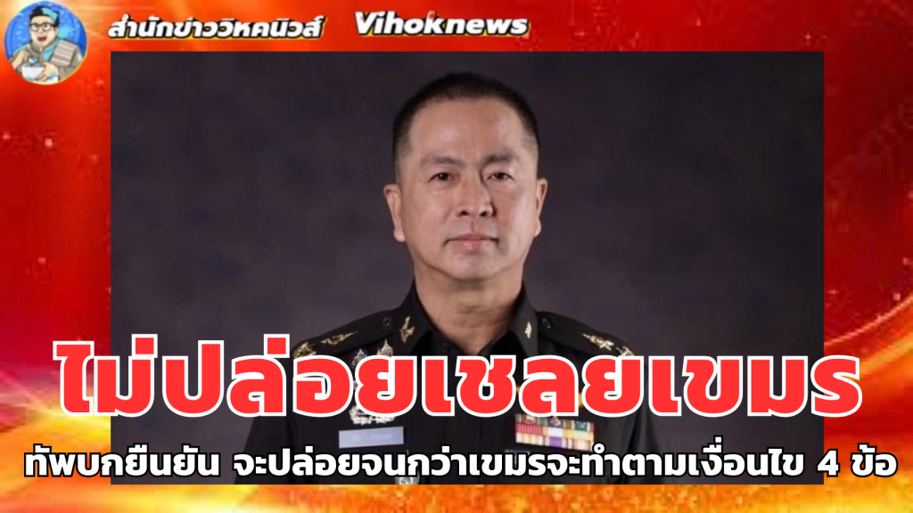 บก.กองทัพไทย โต้ข่าวปล่อย 18 เชลยศึกกัมพูชา ยืนยัน “ไม่เป็นความจริง” ตั้งเงื่อนไข ‘กัมพูชา’ ทำตาม 4 ข้อตกลง ย้ำต้องยุติการกระทำที่เป็นปฏิปักษ์ต่อไทย