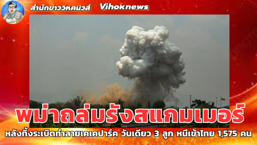 ทหารเมียนมา ส่งโดรนสังเกตการณ์ หลังมอบหมาย กะเหรี่ยงบีจีเอฟ. ทำลายอาคารสำนักงานเคเคปาร์ค วันเดียว 3 ลูก ชาวต่างชาติหนีเข้าไทยล่าสุด 1,575 คน