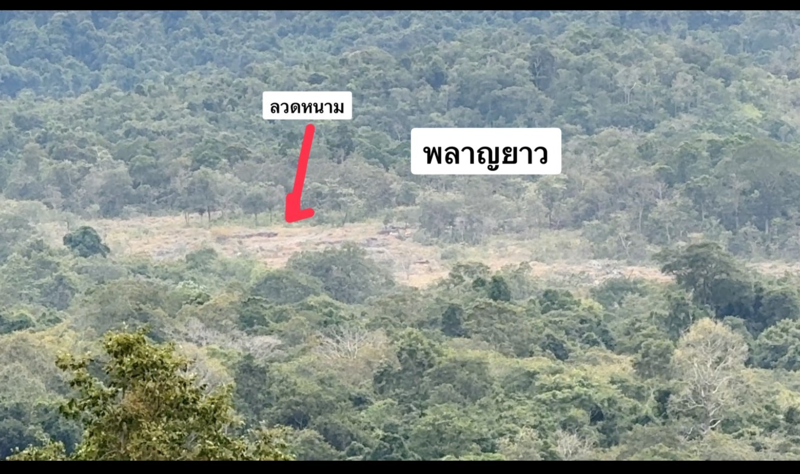ส่วนถัดลงมาด้านล่างจะพบเนินโล่ง คือจุดของ “ พลาญยาว ” ที่ทหารไทยยึดพื้นที่คืนมาได้ ซึ่งจุดนี้อยู่ห่างจาก “ ภูผี ” เพียง 1 กิโลเมตรเท่านั้น
