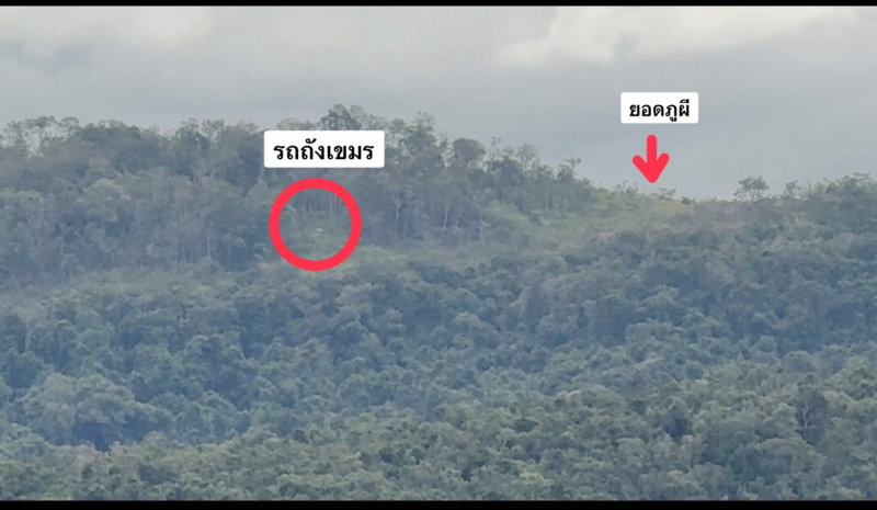 ทีมข่าวลงพื้นที่สังเกตการณ์สถานการณ์ชายแดนไทย – กัมพูชา ฝั่งอำเภอกันทรลักษ์ จังหวัดศรีสะเกษ ซึ่งฝั่งข้ามที่เห็น คือ “ ภูผี ” ที่มีกองกำลังทหารกัมพูชาตรึงกำลังอยู่ตลอดแนวเทือกเขา ทั้งยังทราบว่า มีกองพันลาดตระเวนที่ 371 และกองพลน้อยของทหารกัมพูชาตั้งอยู่ และจากข้อมูลล่าสุด ทราบว่า ทหารกัมพูชา ได้เคลื่อนถัง 3 คัน ขึ้นมาประจำการอยู่บน “ ภูผี ” หันปากกระบอกปืนมายังไทย