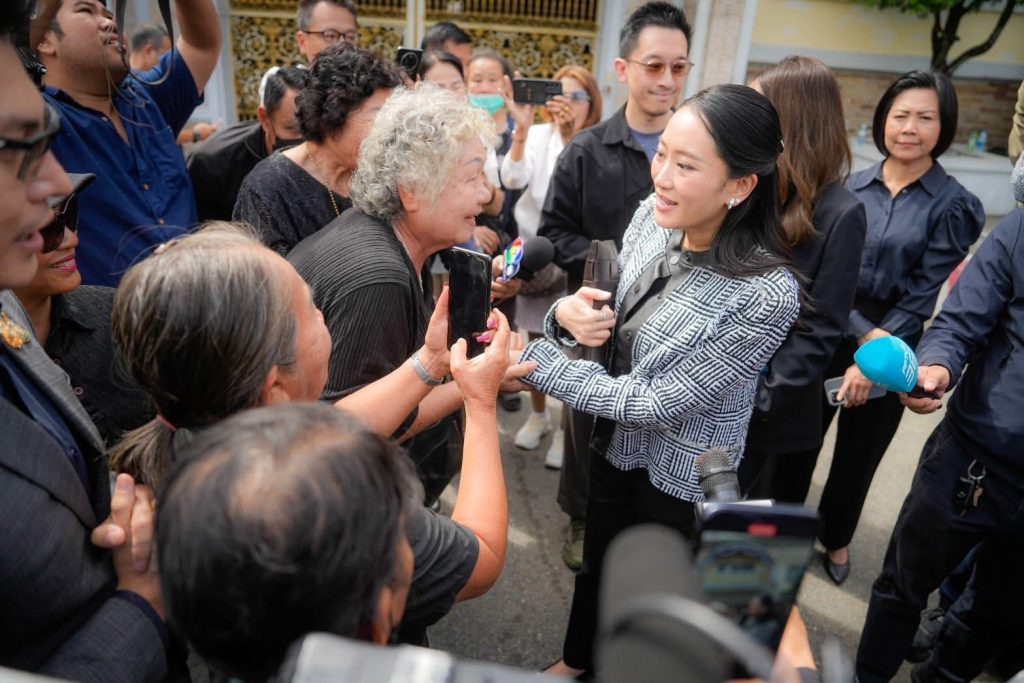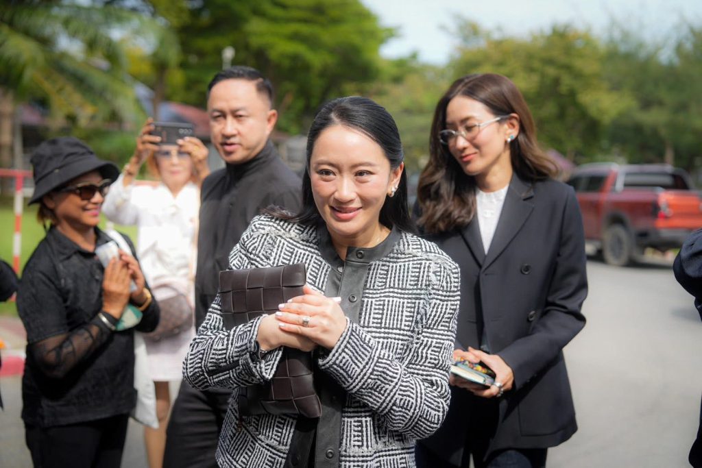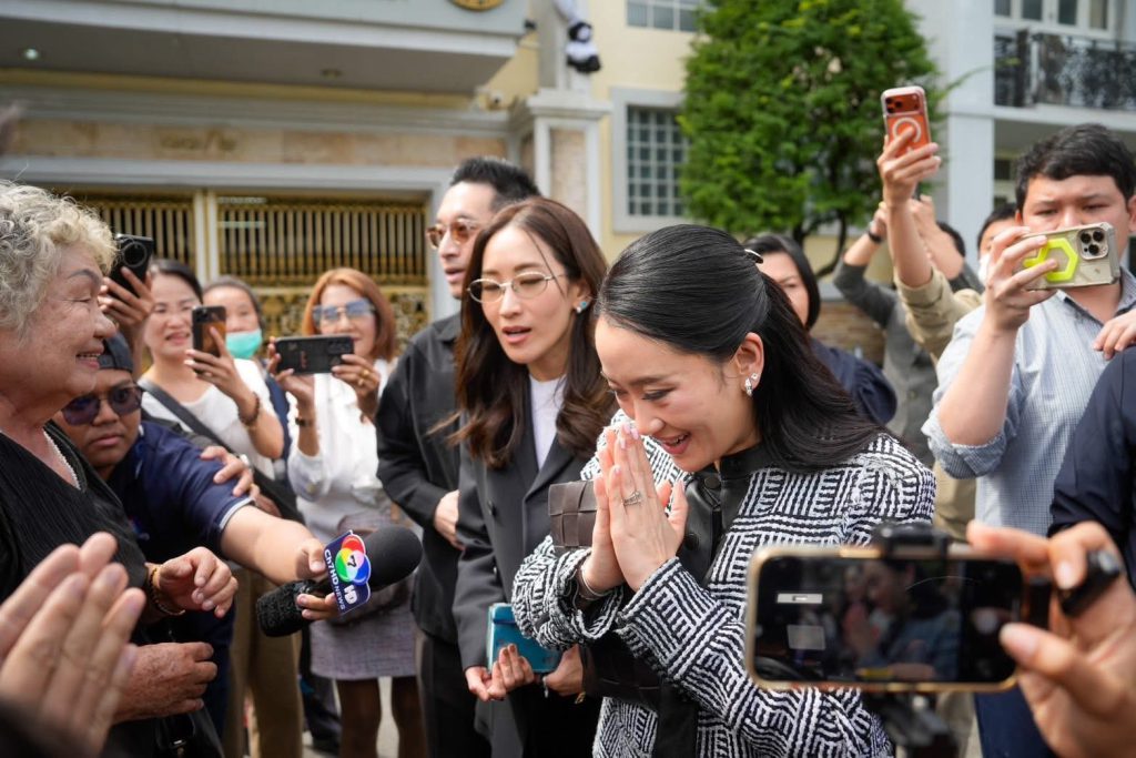 จากนั้น อดีตนายกฯ แพทองธาร ชินวัตร พร้อมด้วย พินทองทา ชินวัตร คุณากรวงศ์ (พี่สาว) ณัฐพงศ์ คุณากรวงศ์ สามีพินทองทา ได้เข้าไปทักทายและขอบคุณประชาชนที่มาให้กำลังใจ ก่อนเดินทางกลับ
