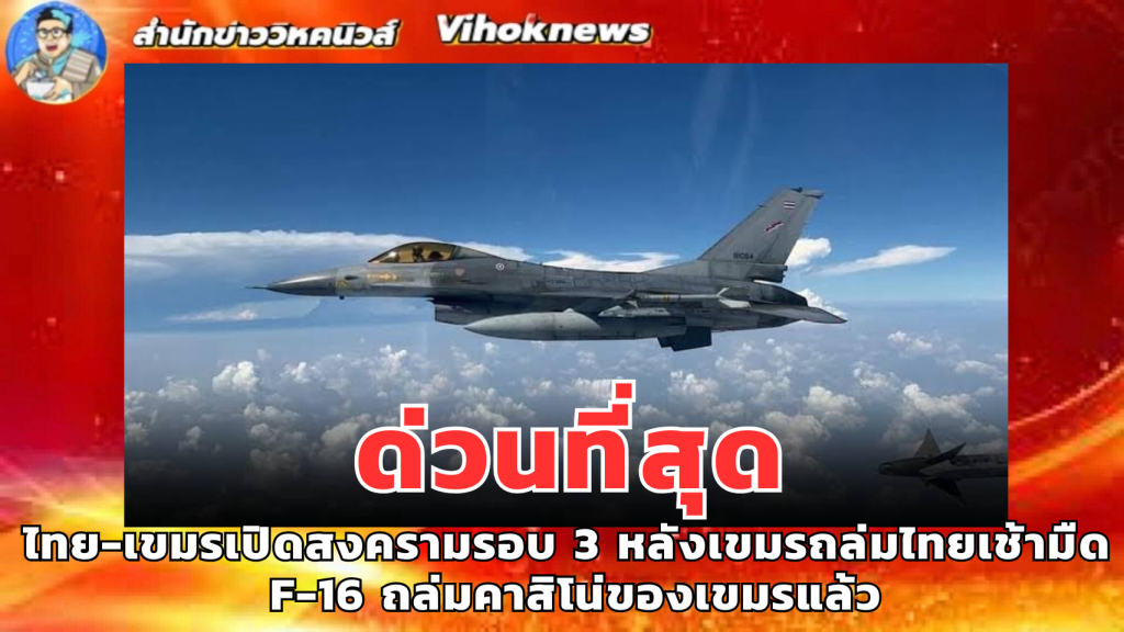 PPTV – ส่ง F-16 ขึ้นบิน! พุ่งเป้าถล่มฐานปืนใหญ่กัมพูชา หลังยิงฐานอนุพงศ์ ทำให้ทหารไทยเสียชีวิต-บาดเจ็บ กองทัพบกย้ำปกป้องตนเองตามหลักสากล!