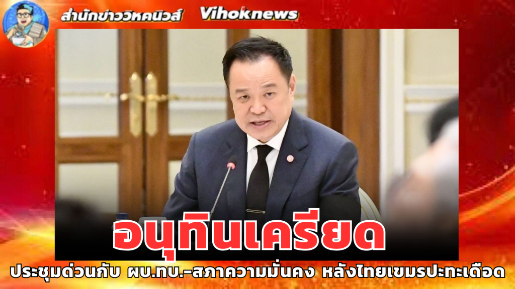 8 ธ.ค. 2568 – ที่ทำเนียบรัฐบาล นายอนุทิน ชาญวีรกูล นายกรัฐมนตรีและรัฐมนตรีว่าการกระทรวงมหาดไทย เรียกประชุมด่วนฝ่ายความมั่นคง บนตึกไทยคู่ฟ้า เพื่อหารือถึงสถานการณ์ชายแดนไทย-กัมพูชา โดยมี พล.อ.ณัฐพล นาคพาณิชย์ รัฐมนตรีว่าการกระทรวงกลาโหม พล.อ.อุกกฤษฎ์ บุญตานนท์ ผู้บัญชาการทหารสูงสุด พล.อ.พนา แคล้วปลอดทุกข์ ผู้บัญชาการทหารบก (ผบ.ทบ.) พลเรือเอกไพโรจน์ เฟื่องจันทร์ ผู้บัญชาการทหารเรือ (ผบ.ทร.) พลอากาศเอกเสกสรร คันธา ผู้บัญชาการทหารอากาศ (ผบ.ทอ.) พล.ต.อ.กิตติรัฐ พันธุ์เพชร ผู้บัญชาการตำรวจแห่งชาติ (ผบ.ตร.) นายอรรษิษฐ์ สัมพันธรัตน์ ปลัดกระทรวงมหาดไทย นายนฤชา โฆษาศิวิไลซ์ อธิบดีกรมการปกครอง นายฉัตรชัย บางชวด เลขาธิการสภาความมั่นคงแห่งชาติ (สมช.) พร้อมด้วยเจ้าหน้าที่ภาคส่วนต่างๆ เข้าร่วมประชุมด้วย
