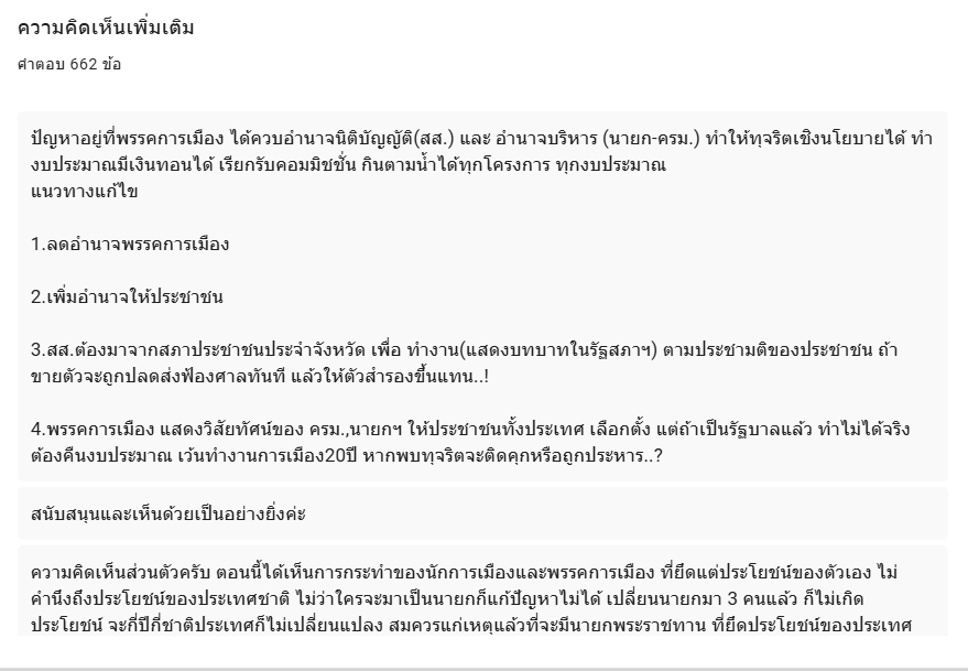 จากการสำรวจเมื่อถามถึง ความคิดเห็นของประชาชนที่จะสนับสนุน นายกรัฐมนตรีพระราชทานในวันนี้ พบว่า