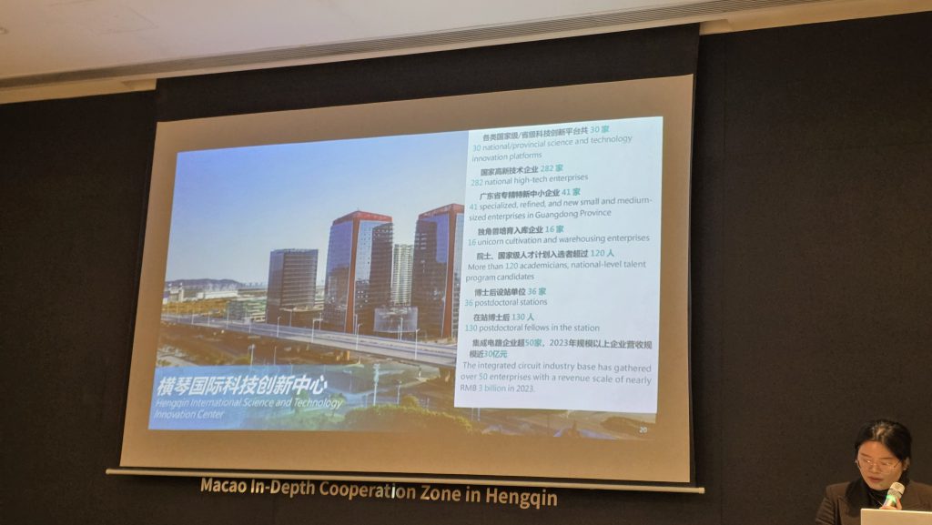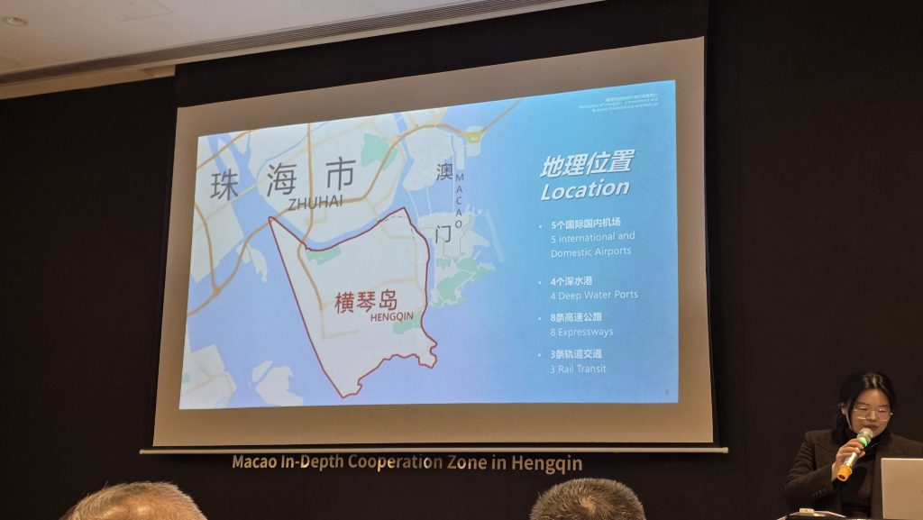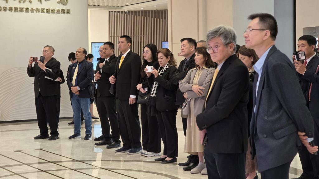 เจ้าหน้าที่บริหารเขตบริหารพิเศษเหิงฉิน (Hengqin) นำคณะฯ ชมวิวผังเมือง เหิงฉิน – มาเก๊า – จูไห่ บนตึก IFC Hengqin Huafa หรือตึกสูงในเครือ Huafa ชั้น 62 พร้อมบรรยาย ขั้นตอนการขยายพื้นที่เมือง ที่ถูกพัฒนาโดยการถมทะเล ในการสร้างเมืองและ การจัดวางผังเมืองในการรองรับการเชื่อมโยงเมืองต่างๆเข้าด้วยกัน
