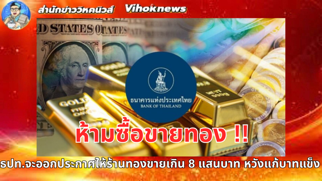 ห้ามซื้อขายทอง !! ธปท.จะออกประกาศให้ร้านทองขายเกิน 8 แสนบาท หวังแก้บาทแข็ง