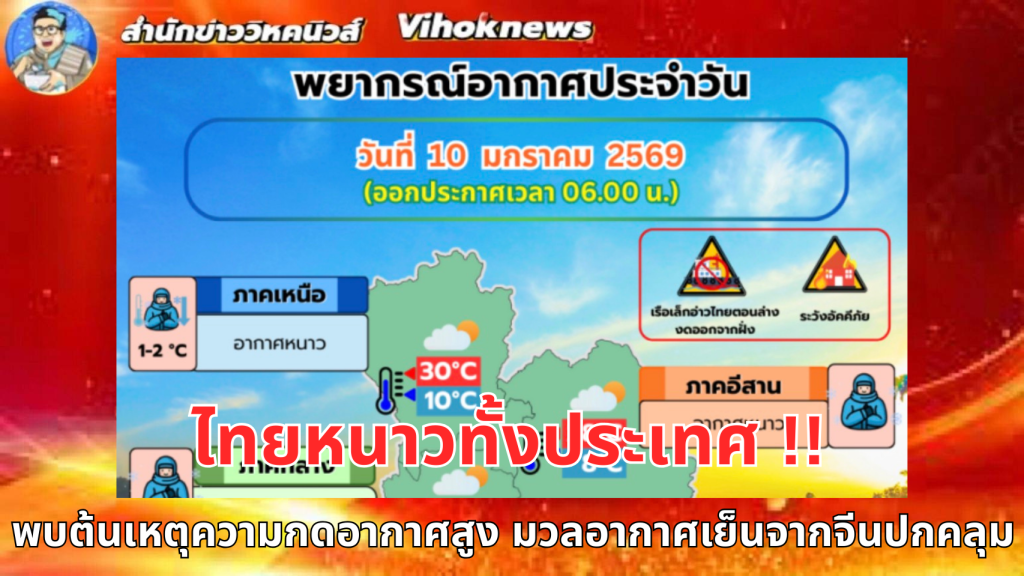 กรมอุตุนิยมวิทยา พยากรณ์สภาพอากาศวันนี้ 10ม.ค. ประเทศไทยตอนบนยังคงมีอากาศหนาวเย็น