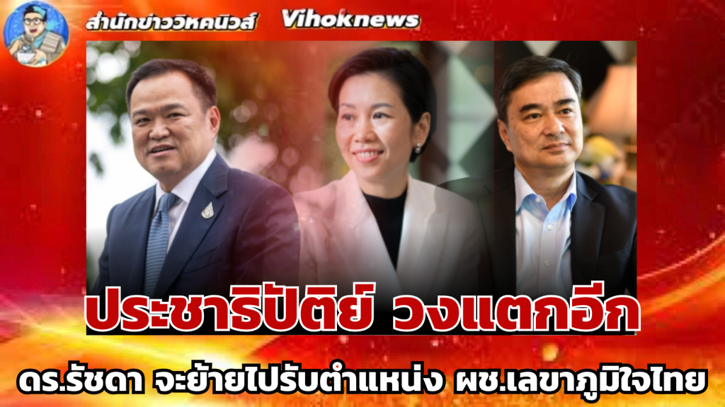 ประชาธิปัติย์ วงแตกอีก !! ดร.รัชดา จะย้ายไปรับตำแหน่ง ผช.เลขาภูมิใจไทย