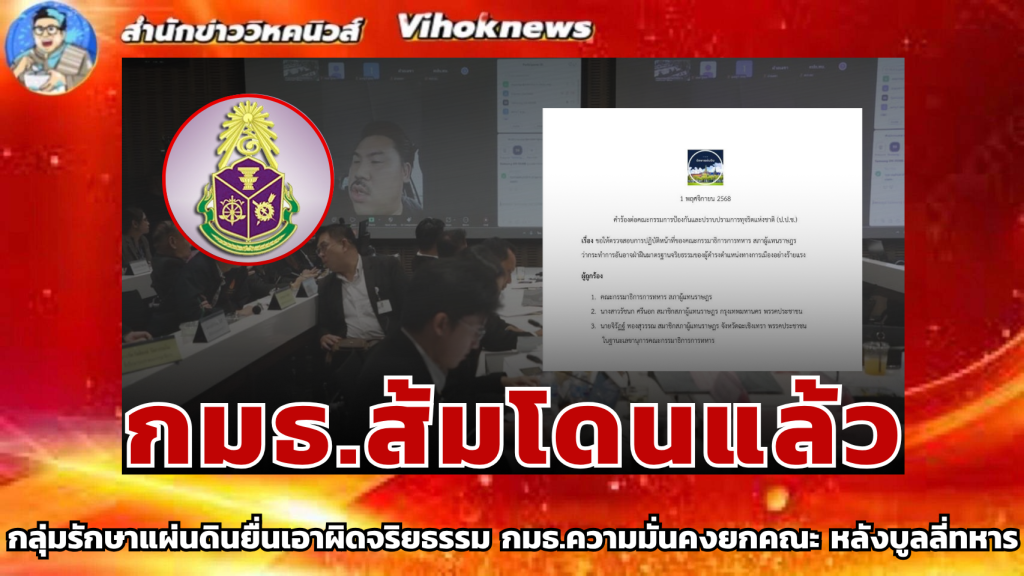 วันนี้ (วันที่ 1 พฤศจิกายน 2568) กลุ่ม “รักษาแผ่นดิน” ได้ยื่นคำร้องต่อ คณะกรรมการป้องกันและปราบปรามการทุจริตแห่งชาติ (ป.ป.ช.) เพื่อขอให้ตรวจสอบพฤติกรรมของ คณะกรรมาธิการการทหาร สภาผู้แทนราษฎร ทั้งคณะ