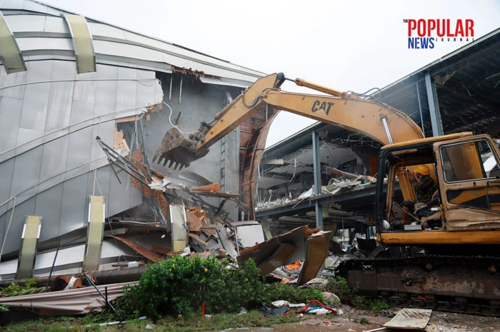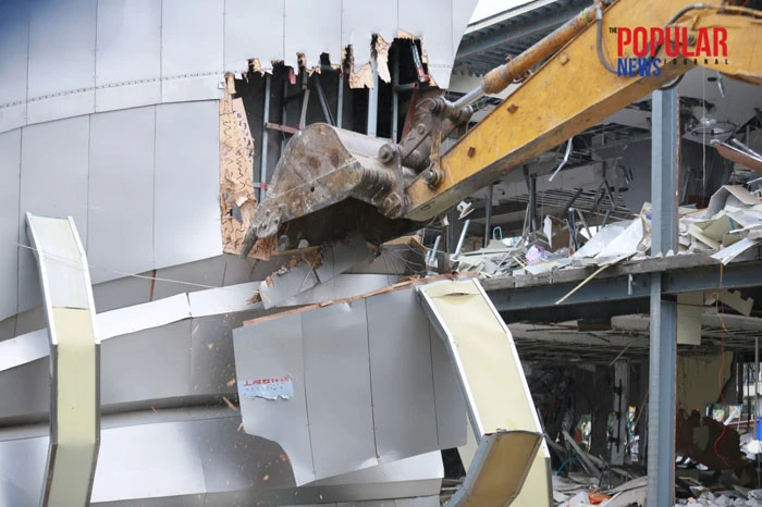 เครื่องจักรหนักกำลังรื้อถอนอาคารแห่งหนึ่งในเคเค ปาร์ค