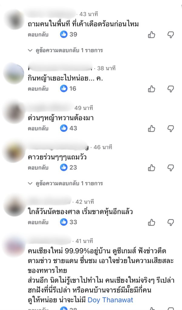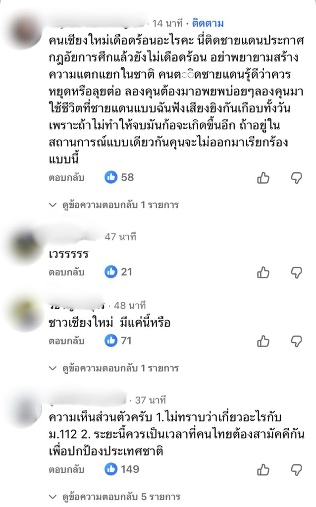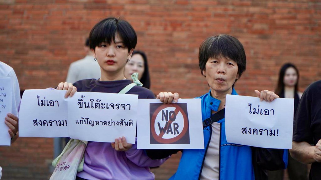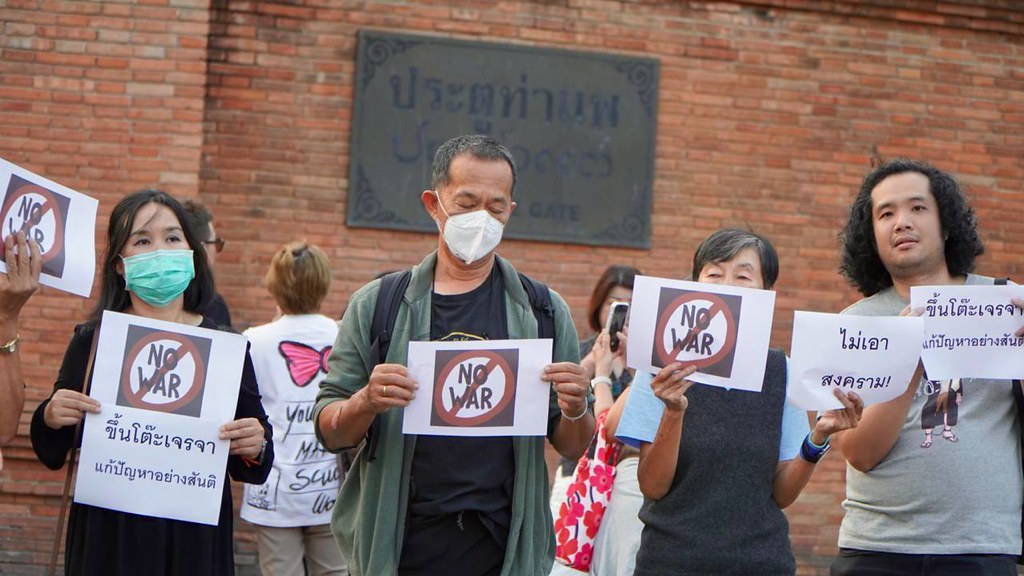 BLUESKY Channel- 13 ธันวาคม 2568 เวลา 17.00 น. ประชาชนชาวเชียงใหม่รวมตัวจัดกิจกรรมประท้วงต่อต้านสงคราม ไทย–กัมพูชา โดยผู้เข้าร่วมกิจกรรมถือป้ายข้อความ เช่น “ไม่เอาสงคราม” “หยุดยิง (CEASEFIRE)” และ “ขึ้นโต๊ะเจรจาแก้ปัญหาอย่างสันติ”