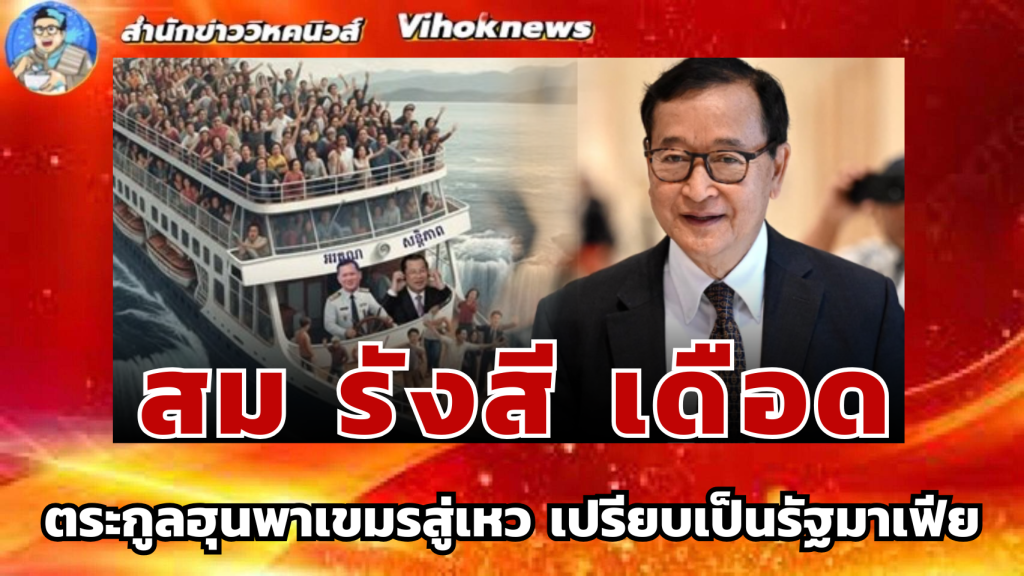 สยามรัฐ-เมื่อวันที่ 19 ธ.ค. นายสม รังสี อดีตผู้นำฝ่ายค้านกัมพูชา ได้ออกมาเคลื่อนไหวบนโลกโซเชียลอย่างต่อเนื่อง โดยล่าสุดได้โพสต์รูปภาพเรือลำหนึ่งที่มี 2 พ่อลูก “ตระกูลฮุน” สมเด็จฮุน เซน และ ฮุน มาเนต อยู่บนหัวเรือ โดยบนเรือมีประชาชนชาวกัมพูชาอยู่เต็มลำ กำลังจะตกผาน้ำตกที่สูงชัน พร้อมโพสต์ข้อความว่า “สองพ่อลูกคู่นี้กำลังนำพาประเทศกัมพูชาไปสู่หายนะ”