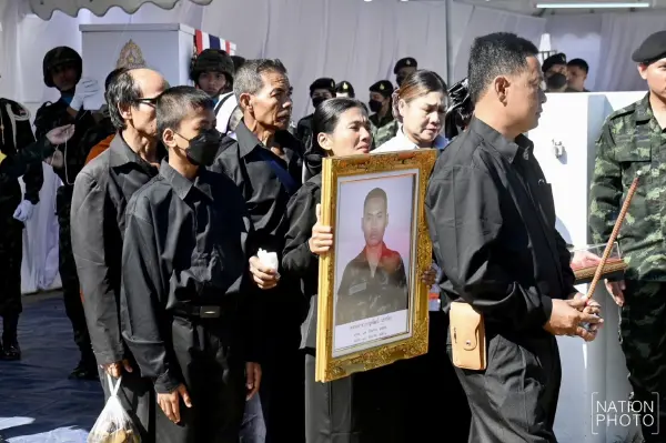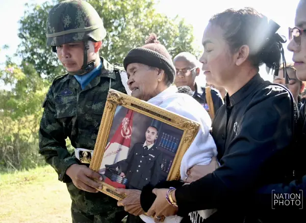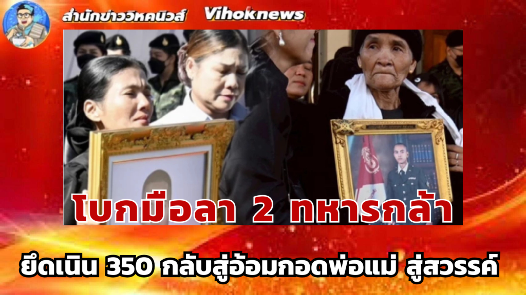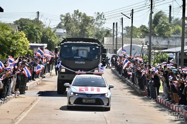 ไทยนิวส์-ชาวสุรินทร์หลั่งน้ำตา ยืนโบกธง ส่ง 2 ทหารกล้า กลับบ้านสู่อ้อมกอดครอบครัวครั้งสุดท้าย วันนี้ (21 ธ.ค. 68) นานอนุทิน ชาญวีรกูล นายกรัฐมนตรีและรัฐมนตรีว่าการกระทรวงมหาดไทย เป็นประธานในพิธีส่งศพทหารกล้า คือ จ.ส.อ.สำเริง คลังประโคน และพลทหารภานุพัฒน์ เสาร์สา นักรบสมรภูมิเนิน 350 ณ โรงพยาบาลค่ายวีรวัฒน์โยธิน จังหวัดสุรินทร์
