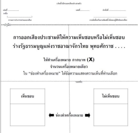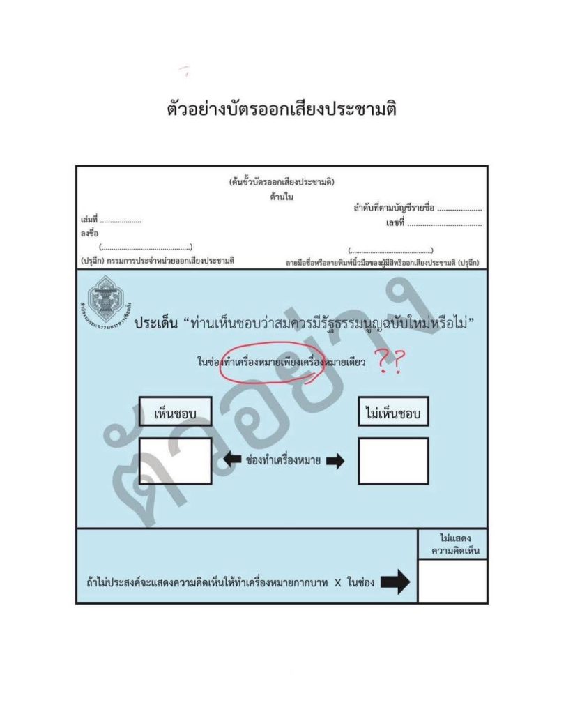 2)เอกสารกกต มีความบกพร่องชัดเจนในส่วนสำคัญ คือ การไม่ระบุเครื่องหมายกากบาท( x )ปรากฏไว้ในเอกสารที่จะให้ประชาชนเข้าใจในการลงความเห็นชอบหรือไม่เห็นชอบ