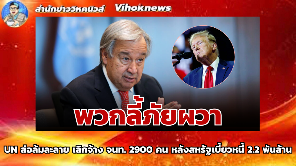 Thaitv2-UN ส่อล่มสลาย! “ทรัมป์” ตัดท่อน้ำเลี้ยง 2.2 พันล้าน เลขาฯ ยูเอ็นโอด “เงินหมด” กลางปีนี้  ปิดคลินิก-งดแจกอาหารผู้ลี้ภัย หลังสหรัฐฯ เบี้ยวหนี้-ถอนตัว 31 หน่วยงาน เตรียมปลดคนงานเกือบ 3 พัน!