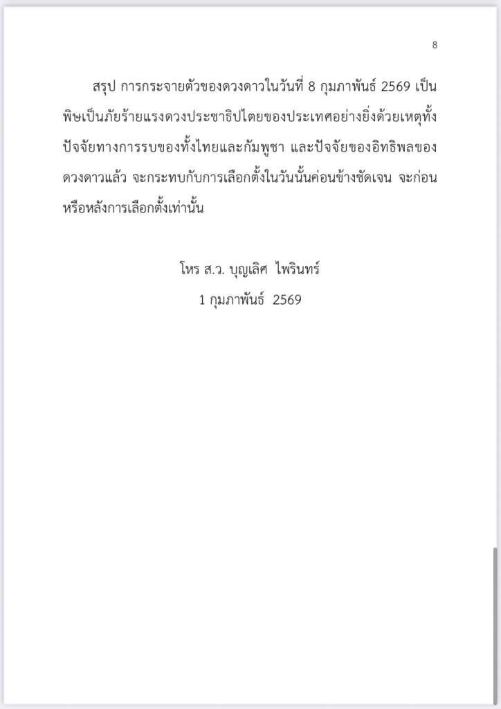 โหร ส.ว. บุญเลิศ ไพรินทร์ คณบดีสถาบันรัฐประศาสนศาสตร์และนโยบายสาธารณะ มหาวิทยาลัยรังสิต อดีตสมาชิกสภาผู้แทนราษฎรจังหวัดฉะเชิงเทรา และอดีตสมาชิกวุฒิสภาจังหวัดฉะเชิงเทรา ระบุว่า