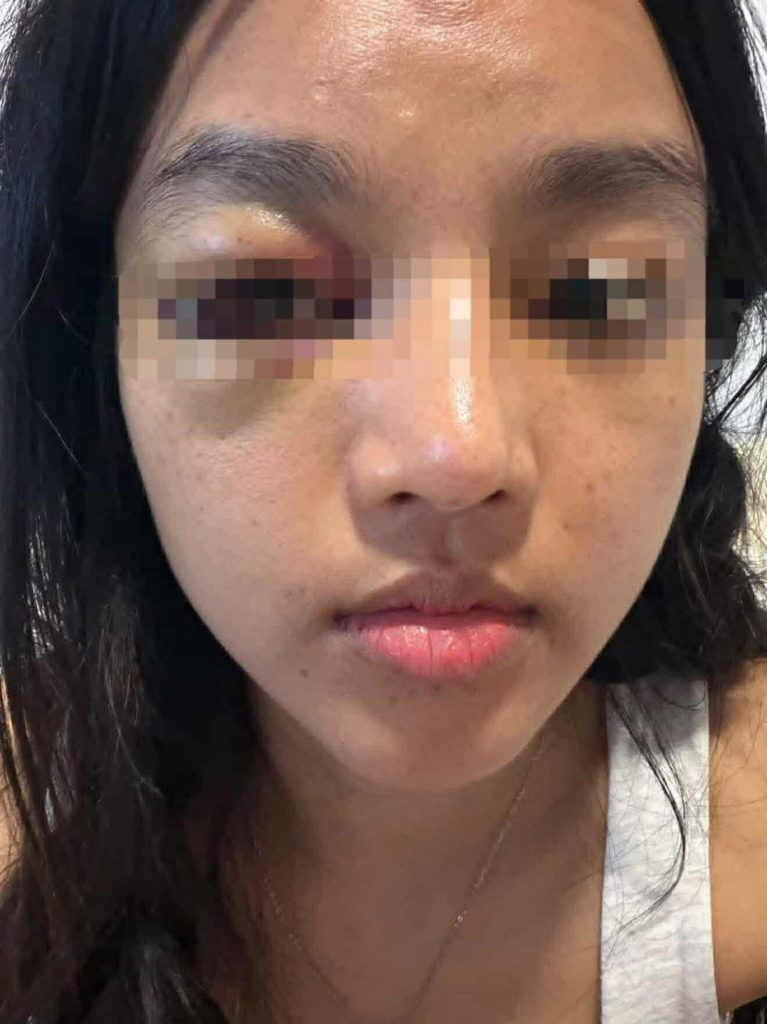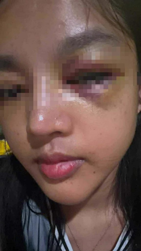สิ่งที่น้องนั้นโดนคือ ทั้งตบทั้งเตะทั้งต่อย เอาโคม