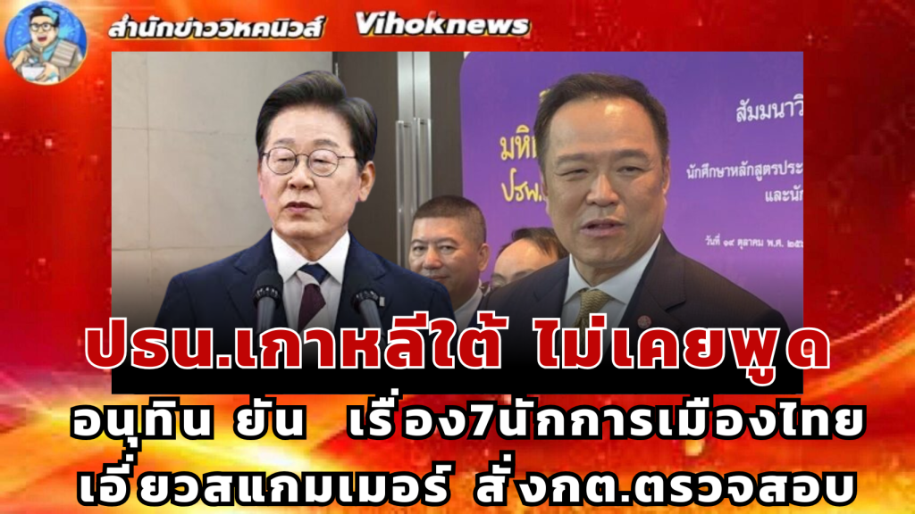 เมื่อเวลา 11.05 น. วันที่ 19 ตุลาคม ที่โรงแรมเซ็นทารา แกรนด์ แอท เซ็นทรัลเวิลด์ เขตปทุมวัน กรุงเทพฯ นายอนุทิน ชาญวีรกูล นายกรัฐมนตรีและรัฐมนตรีว่าการกระทรวงมหาดไทย ให้สัมภาษณ์ถึงกระแสข่าวในโลกออนไลน์ว่า นายกรัฐมนตรีเกาหลีใต้ จะเปิดชื่อนักการเมืองไทย 7 คน ที่มีส่วนเกี่ยวข้องกับแก๊งแสกมเมอร์ในประเทศกัมพูชา โดยนายอนุทิน ย้อนถามสื่อว่า เรื่องมาจากเพจใช่หรือไม่ ผู้สื่อข่าวจึงตอบว่า ใช่