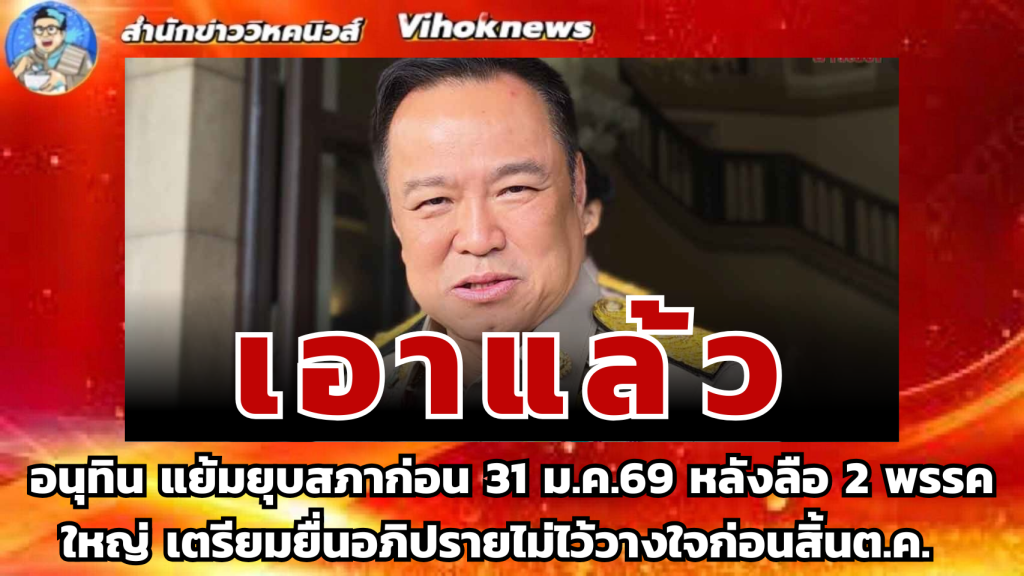 เมื่อถามอีกว่าจะมีการยุบสภาก่อนวันที่ 31 ม.ค.69 หรือไม่ นายอนุทินไม่ตอบ และรีบขึ้นรถยนต์เดินทางออกจากทำเนียบฯ ไปประชุมคณะกรรมการอำนวยการรักษาความมั่นคงภายในราชอาณาจักร ที่ กอ.รมน. เขตดุสิต