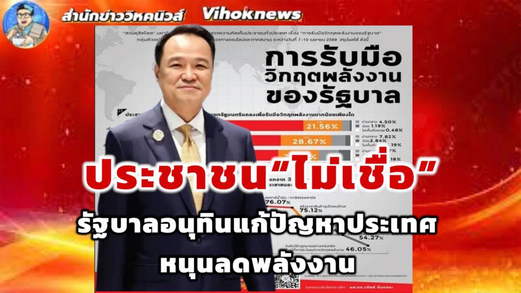 เมื่อวันที่ 12 เมษายน 2569 สวนดุสิตโพล มหาวิทยาลัยสวนดุสิต เปิดเผยผลสำรวจความคิดเห็นของประชาชนทั่วประเทศ จำนวน 1,266 คน ซึ่งดำเนินการสำรวจทั้งทางออนไลน์และภาคสนามระหว่างวันที่ 7–10 เมษายน 2569 ในหัวข้อ “การรับมือวิกฤตพลังงานของรัฐบาล” เพื่อสะท้อนมุมมองของประชาชนต่อแนวทางแก้ปัญหาพลังงานและค่าครองชีพ