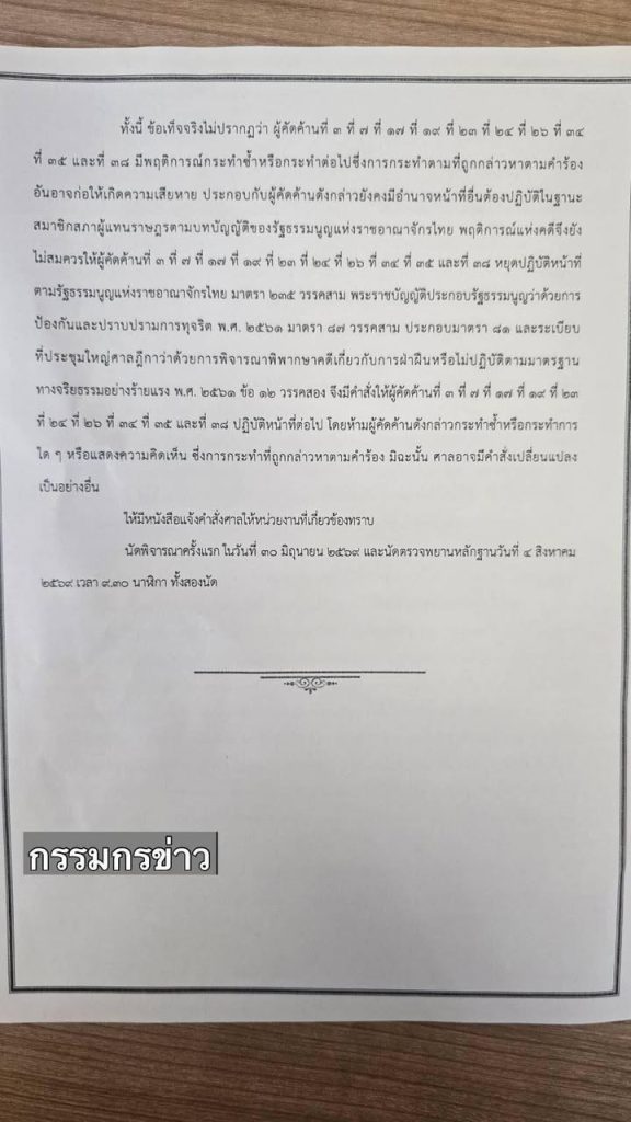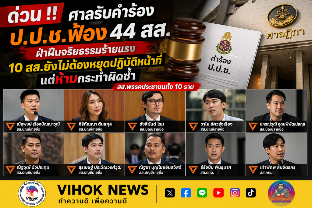 ด่วน !! ศาลรับคำร้อง ป.ป.ช.ฟ้อง 44 สส. ฝ่าฝืนจริยธรรมร้ายแรง 10 สส.ยังไม่ต้องหยุดปฏิบัติหน้าที่ แต่ห้ามกระทำผิดซ้ำ