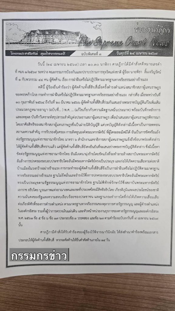 วิหคนิวส์ – เมื่อวันที่ 24 เมษายน 2569 ศาลฎีกานัดฟังคำสั่งในคดีที่คณะกรรมการป้องกันและปราบปรามการทุจริตแห่งชาติ (ป.ป.ช.) ยื่นฟ้องอดีตสมาชิกสภาผู้แทนราษฎร (สส.) พรรคก้าวไกล จำนวน 44 ราย กรณีลงชื่อเสนอแก้ไขประมวลกฎหมายอาญา มาตรา 112 โดยถูกกล่าวหาว่าฝ่าฝืนมาตรฐานจริยธรรมอย่างร้ายแรง