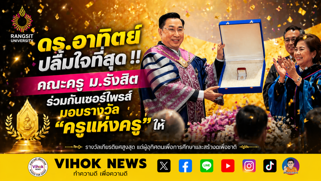 วิหคนิวส์- มหาวิทยาลัยรังสิตมีมติในปี 2561 มอบรางวัลอาจารย์ดีเด่นเป็นกรณีพิเศษ สาขา “ครูแห่งครู” ให้แก่ ดร.อาทิตย์ อุไรรัตน์ ผู้ก่อตั้งและผู้นำทางความคิดของมหาวิทยาลัย