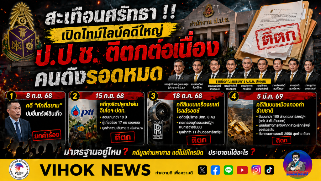 สำนักข่าววิหคนิวส์-ประเด็นความเคลื่อนไหวของคณะกรรมการ ป.ป.ช. กลายเป็นที่จับตาของสังคมอย่างต่อเนื่อง หลังมีหลายคดีสำคัญที่ถูก “ตีตก” ในช่วงเวลาใกล้เคียงกัน จนเกิดข้อสงสัยต่อมาตรฐานการตรวจสอบ