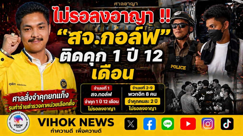 ไม่รอลงอาญา !! “สจ.กอล์ฟ” ติดคุก 1 ปี 12 คดีทำร้ายตำรวจคาหน่วย โดนคุกยกแก็ง