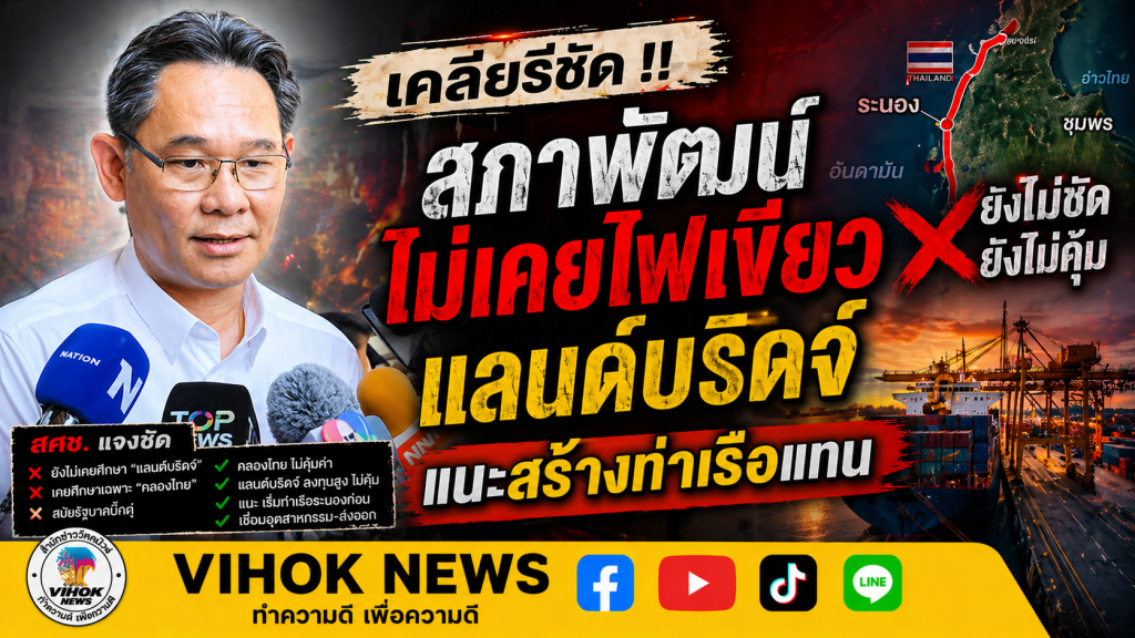 สำนักข่าววิหคนิวส์ – วันที่ 28 เม.ย. 2569 ที่ทำเนียบรัฐบาล นายดนุชา พิชยนันท์ เลขาธิการสำนักงานสภาพัฒนาการเศรษฐกิจและสังคมแห่งชาติ (สศช.) กล่าวชี้แจงกรณีมีกระแสข่าวว่า สศช.เคยมีผลการศึกษาว่าโครงการ “แลนด์บริดจ์” ไม่คุ้มค่าทางเศรษฐกิจ โดยยืนยันว่า สศช.ยังไม่เคยศึกษาโครงการแลนด์บริดจ์อย่างเป็นทางการ