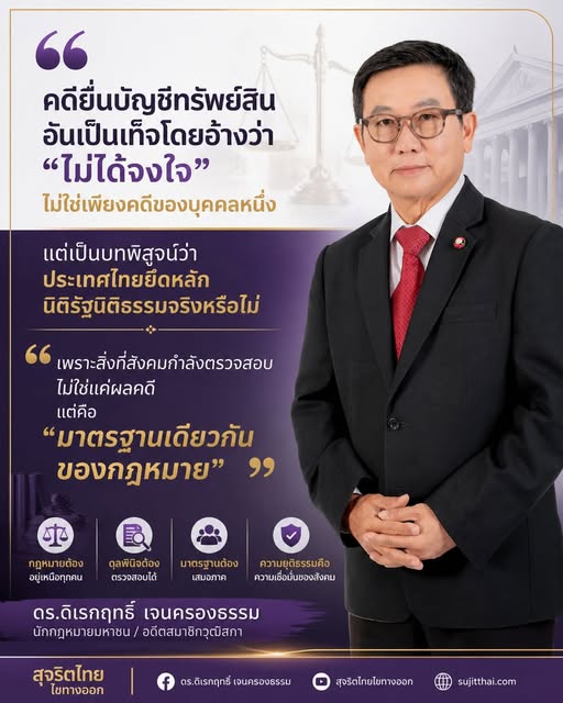 จับตาทั้งประเทศ !! คดีทรัพย์สินสะท้อน “มาตรฐานกฎหมายต้องเท่ากัน”
