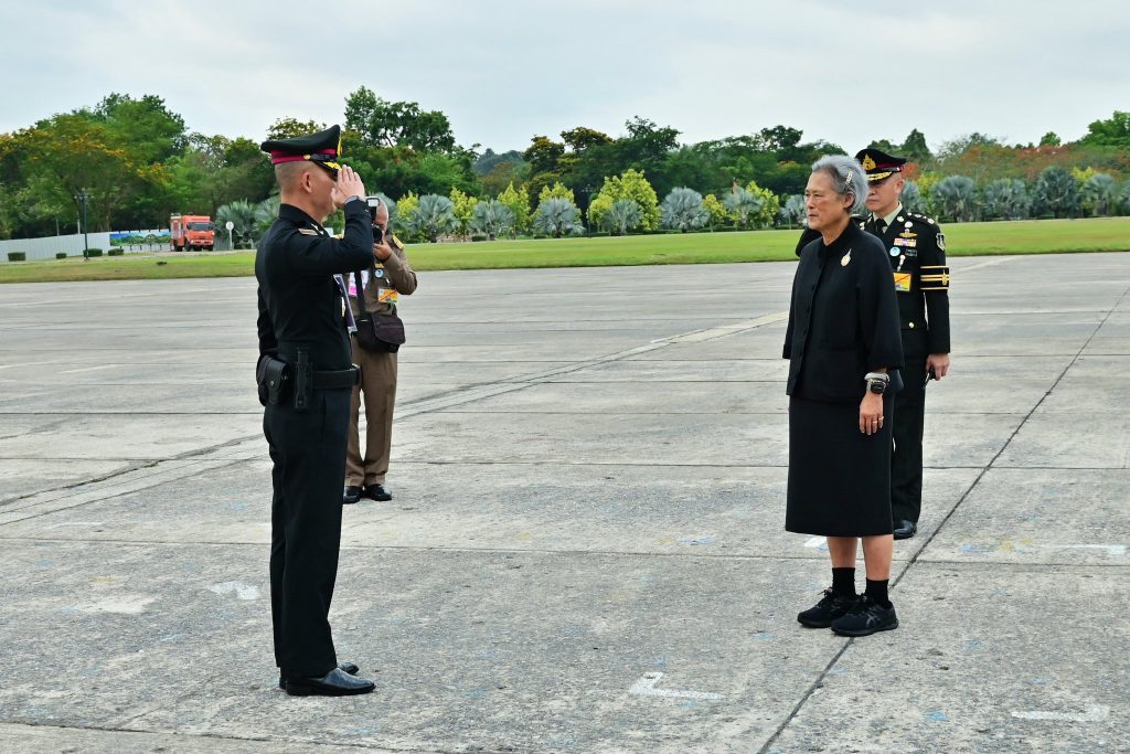 พลเอกหญิง ศาสตราจารย์เกียรติคุณ สมเด็จพระกนิษฐาธิราชเจ้า กรมสมเด็จพระเทพรัตนราชสุดาฯ สยามบรมราชกุมารี เสด็จพระราชดำเนินไปยังบริเวณด้านหน้าตึกกองบัญชาการ โรงเรียนนายร้อยพระจุลจอมเกล้า จังหวัดนครนายก