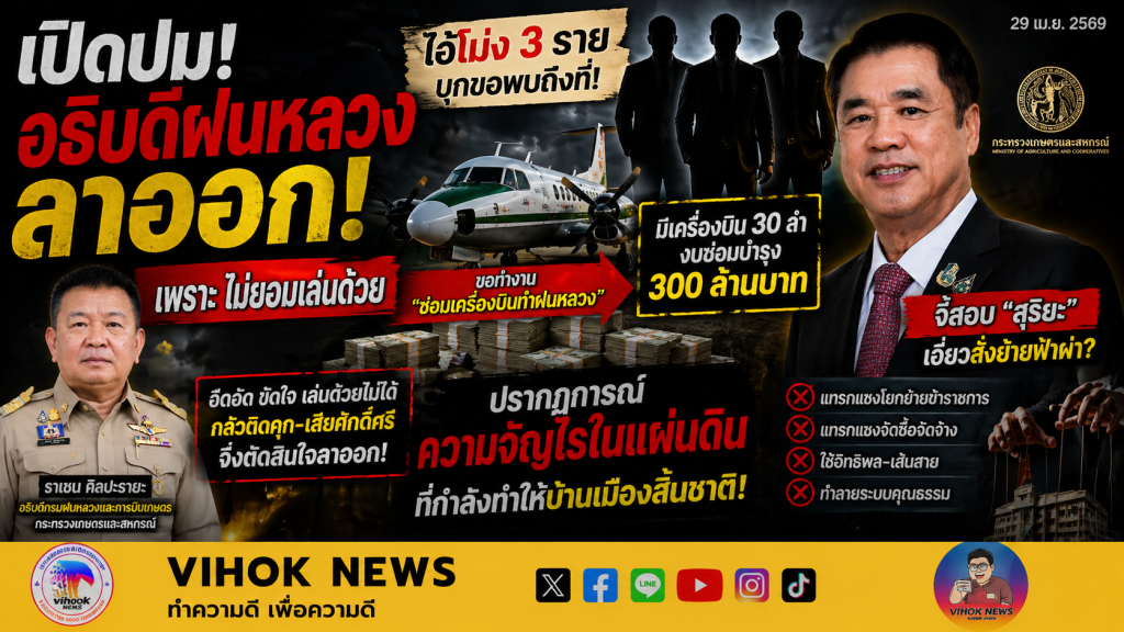 สำนักข่าววิหคนิวส์-จากกรณีการลาออกของอธิบดีกรมฝนหลวงและการบินเกษตร ล่าสุดมีข้อมูลระบุว่า ก่อนตัดสินใจลาออก ได้มีกลุ่มบุคคลปริศนาประมาณ 3 ราย พยายามขอเข้าพบ เพื่อหารือเกี่ยวกับงานซ่อมบำรุงอากาศยานฝนหลวง ซึ่งมีจำนวนกว่า 30 ลำ และใช้งบประมาณดูแลรวมประมาณ 300 ล้านบาท