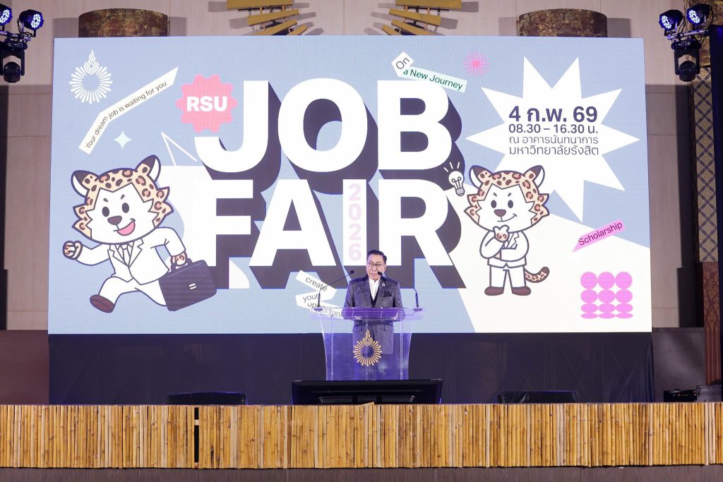 มหาวิทยาลัยรังสิตประสบความสำเร็จอย่างยิ่งในการจัดงาน RSU Job Fair 2026 ซึ่งนับเป็นหนึ่งในมหกรรมแนะแนวอาชีพและการจ้างงานที่ยิ่งใหญ่ที่สุดแห่งปี โดยมีองค์กรชั้นนำทั้งในประเทศและต่างประเทศเข้าร่วมอย่างคับคั่ง เพื่อเปิดโอกาสให้นักศึกษา บัณฑิต และผู้สนใจได้ก้าวสู่เส้นทางอาชีพในอนาคตอย่างมั่นใจ