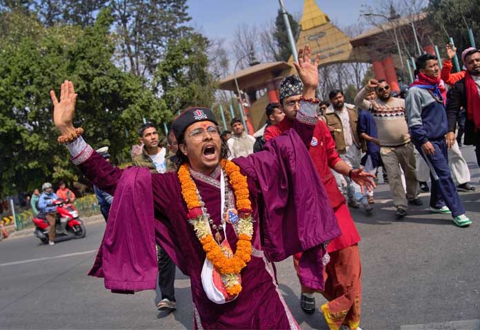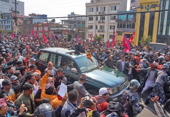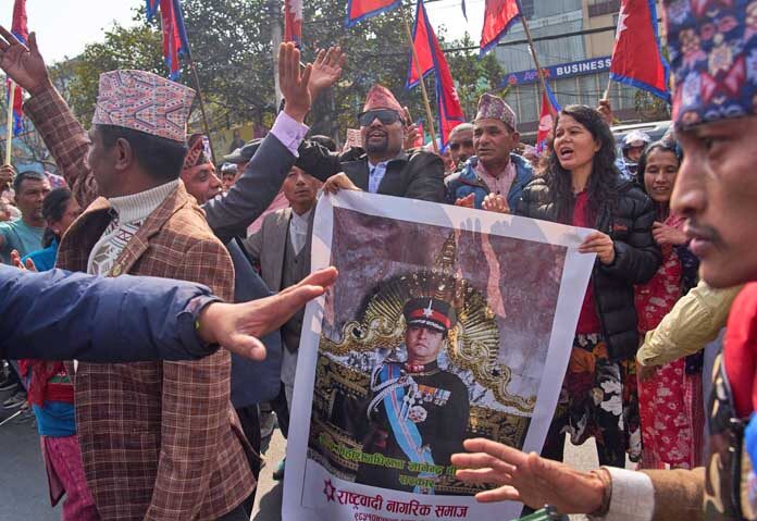 เมื่อวันศุกร์ที่ 13 ก.พ.ตามเวลาท้องถิ่น เพื่อเข้าเฝ้าสมเด็จชญาเนนทระหลังเสด็จกลับจากเนปาลตะวันออกพร้อมเรียกร้องให้ฟื้นฟูระบอบกษัตริย์ที่ถูกยกเลิกไปในปี 2551 โดยฝูงชนส่งเสียงตะโกนว่า “นำพระมหากษัตริย์กลับมา เรารักพระมหากษัตริย์ของเรายิ่งกว่าตัวเราเอง ฟื้นฟูระบอบกษัตริย์ภายใต้รัฐธรรมนูญ” ขณะที่สมเด็จชญาเนนทระทรงโบกพระหัตถ์ทักทายประชาชน