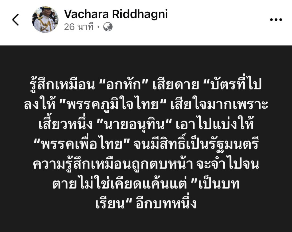 พล.อ.ท.วัชระ ฤทธาคนี โพสต์ระบุว่า…