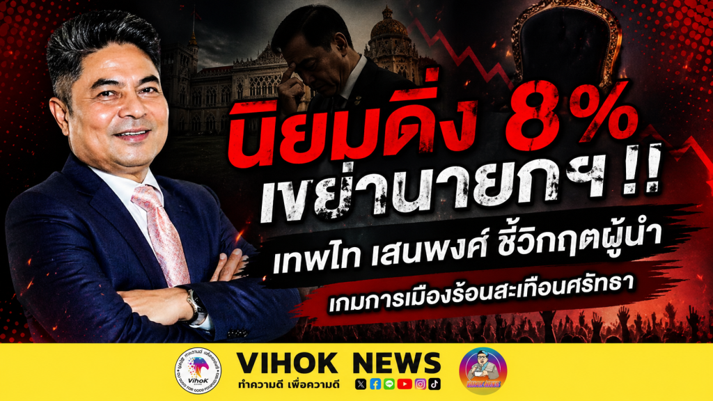 วิหคนิวส์-วันที่ 25 เม.ย. 2569 “เทพไท เสนพงศ์” นักวิเคราะห์การเมือง เปิดมุมมองผ่านรายการ “เที่ยง เจอกัน” วิเคราะห์สถานการณ์การเมืองไทยร้อนแรง โดยชี้ว่าขณะนี้กำลังเกิด “วิกฤตศรัทธา” ต่อผู้นำประเทศ หลังคะแนนนิยมของนายกรัฐมนตรีลดฮวบเหลือเพียง 8%